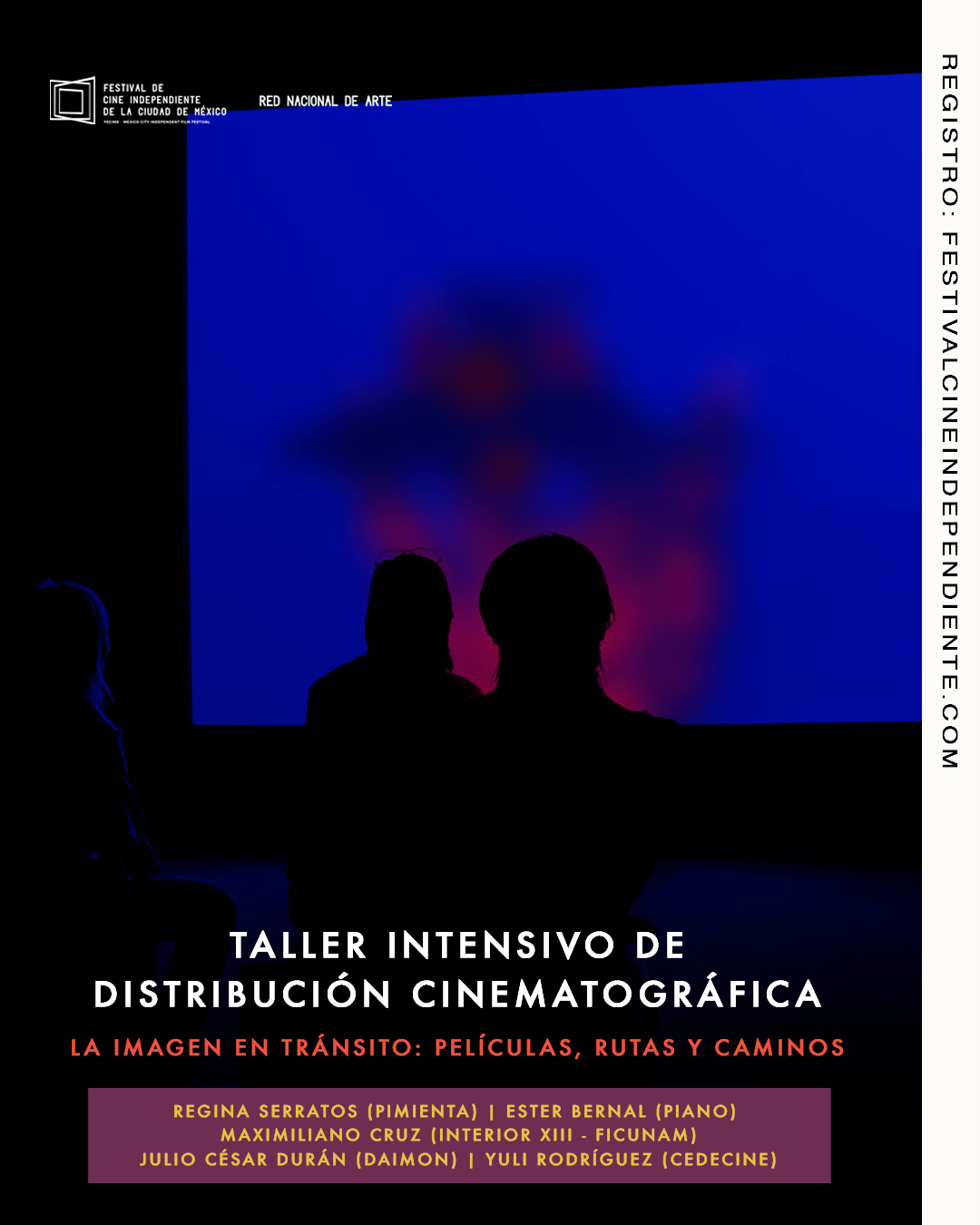El Festival de Cine Independiente de la Ciudad de México (FECIMX) y Red Nacional de Arte convocan al Taller Intensivo de Distribución Cinematográfica impartido por Regina Serratos (Pimienta), Ester Bernal (PIANO), Maximiliano Cruz (Interior XIII – FICUNAM), Julio César Durán (DAIMON) y Yuli Rodríguez (CEDECINE).
